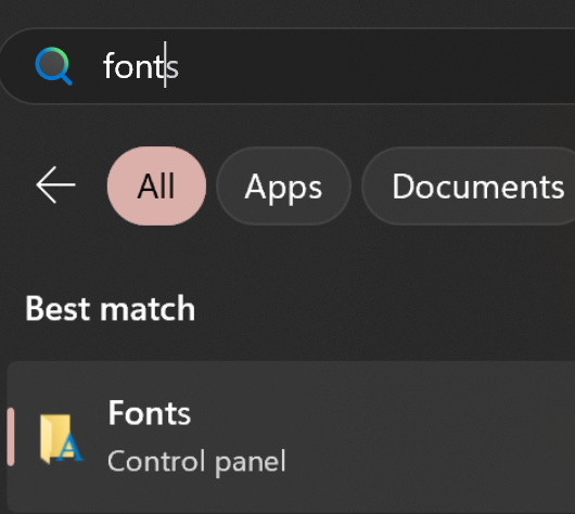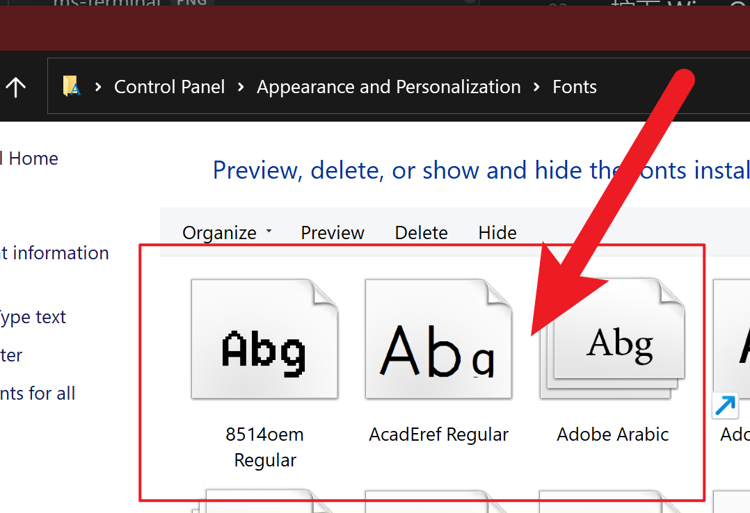 - 按下 Win+Q 搜索 字体,或者直接打开控制面板,然后打开字体页面